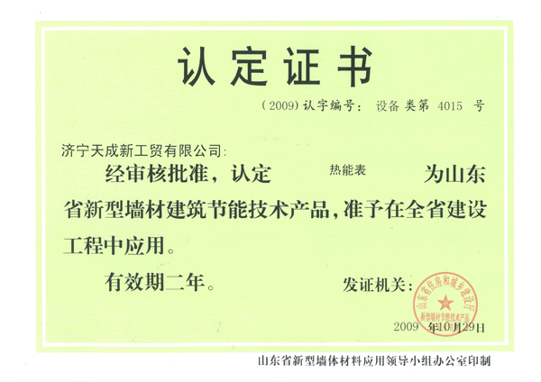 山东省认定证书